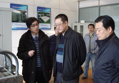 在冯埃生副所长等人的陪同下,李兵主任一行参观了液流储能电池实验室。张宇博士详细介绍了全钒液流储能电池技术进展情况以及产业化应用前景。李兵主任对大连化物所在全钒液流储能电池技术开发和产业化推进方面所取得的成绩给予了充分肯定,鼓励科研人员加快研发和产业化进度,配合辽宁省新能源战略的实施,促进辽宁省产业结构升级,省经信委将在液流储能电池的应用示范和产业化等方面给予大力支持。