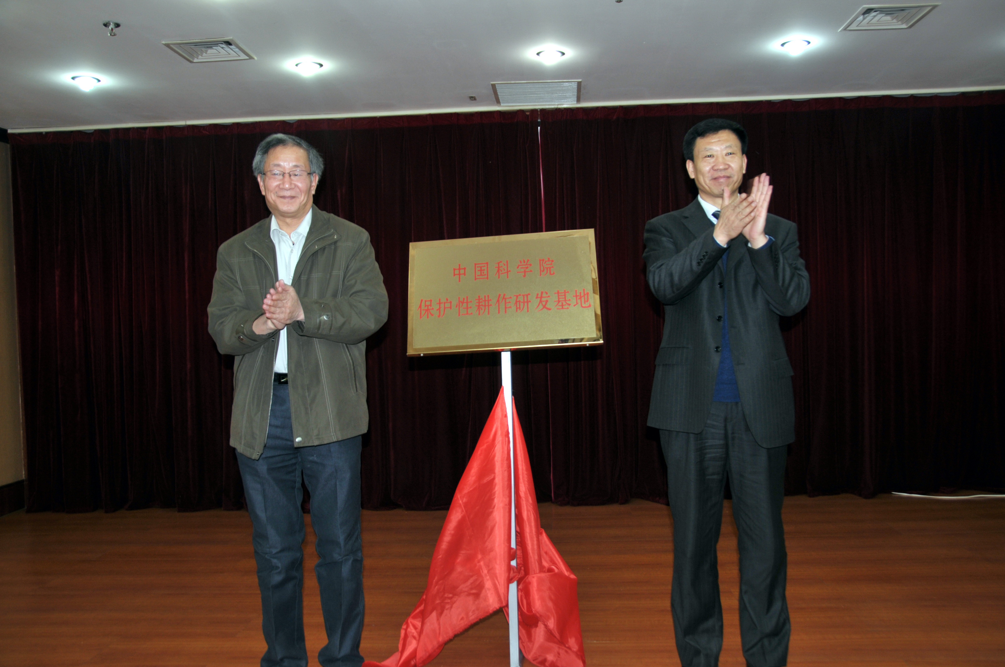 沈阳生态所所长韩兴国、梨树县委书记李有昌、吉林省农业委员会科教处长肖珍武分别在开幕式上致辞。梨树县副县长王柏仲主持了中国科学院?;ば愿餮蟹⒒亟遗埔鞘?,韩兴国所长和李有昌书记分别代表中科院沈阳生态所和梨树县为基地启动揭牌。