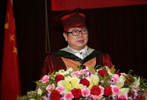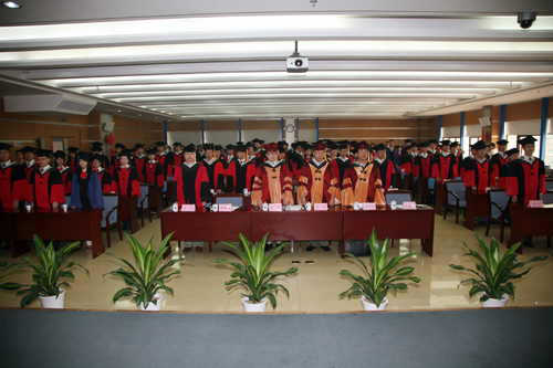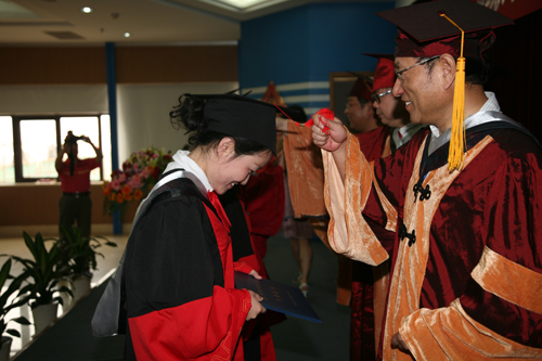 毕业典礼在庄严的国歌声中开始。副校长侯一筠首先宣读了2010年度通过毕业答辩的学生名单,并向毕业生表示祝贺。校长孙松、副校长侯一筠、李铁刚为127位毕业生扶流苏并颁发毕业证书。