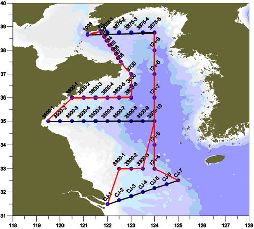 2010年中国近海海洋科学考察开放共享航次航线示意图