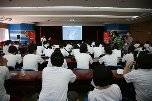 郑守仪院士热情的接待了夏令营同学,邀请大家参观了她的有孔虫实验室,在电子显微镜下观看了真实的有孔虫标本。在学术报告厅,郑守仪院士为大家做了“大海中的小巨人——有孔虫”专题科普报告,生动讲解了有孔虫生活史、科学意义、美学价值等知识,希望青少年努力学习科学知识,探索海洋奥秘,长大后为我国海洋科学事业做出贡献。