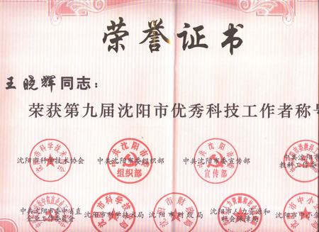 此次评选表彰由沈阳市科协、市委组织部、市委宣传部、市委教科工委、市委中省直企业工委、市科技局、市财政局、市人力资源和社会保障局、市中小企业局9家单位联合组织,旨在表彰近年来我市科技战线涌现出的杰出个人和先进代表,在全市营造“尊重劳动、尊重知识、尊重人才、尊重创造”的浓厚氛围。此次活动,经过基层初选、组织审查、单位推荐、专家举荐、专家评审委员会评审、领导审定,共评选表彰“沈阳市科技英才”12名、“沈阳市优秀科技工作者”160名。沈阳自动化所水下机器人研究室王晓辉研究员和工业信息学研究室杨志家研究员在众多参选者中脱颖而出,获此殊荣。