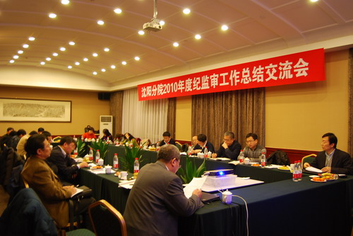 沈阳分院于2011年1月23日在沈阳召开了分院系统2010年度纪监审工作总结交流会。分院系统7个研究所,2个转制公司纪委书记、副书记、全体纪监审工作人员30余人参加了会议。沈阳分院党组书记、副院长马思,副院长、党组成员、纪检组长韩恩厚参加了会议。