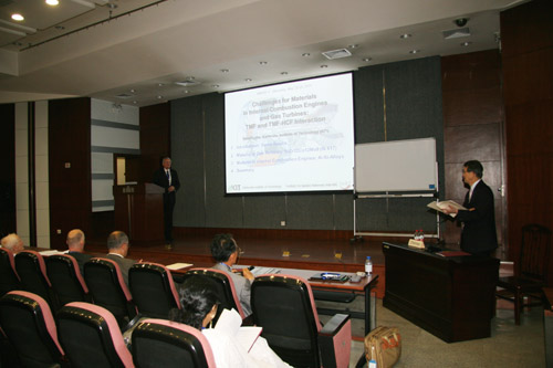 本次论坛由两大部分组成,第一部分是“材料安全与可靠性所面临的挑战”学术研讨会、展板交流和4个工作小组会议,研讨会共邀请了20名世界著名学者作大会邀请报告,报告就高温金属材料、金属生物医用材料、高温陶瓷及金属间化合物、轻金属及复合材料、材料的表面改性与防护、疲劳与断裂、材料计算与模拟等领域开展了广泛深入的交流。同时,来自日本、德国、瑞士、美国、英国、芬兰、俄罗斯、匈牙利、印度、韩国和泰国等国内外30多个世界著名材料研究所、国家实验室和大学的代表参加了研讨会和展板交流活动?;嵋榈牡诙糠治澜绮牧涎芯克じ卟懵厶常敬嗡ぢ厶呈鞘澜绮牧涎芯克厶匙?005年设立以来第一次举办的专题所长论坛,会议就加强材料研究所之间的合作、共享大型设备、数据库、青年人才培养、建立会员单位之间的跨国教育系统等主题进行了磋商和交流。金属所名誉所长师昌绪院士应邀作了《材料、材料科学与技术在中国》主题报告。本次所长论坛还一致通过德国材料分析与测试研究所副所长T. Boellinghaus博士担任新一届世界材料研究所论坛主席、日本国立材料研究所前任所长T. Kishi 博士担任荣誉主席,会议还接受了来自北京科技大学、上海材料研究所和韩国材料科学研究所成为新会员单位。