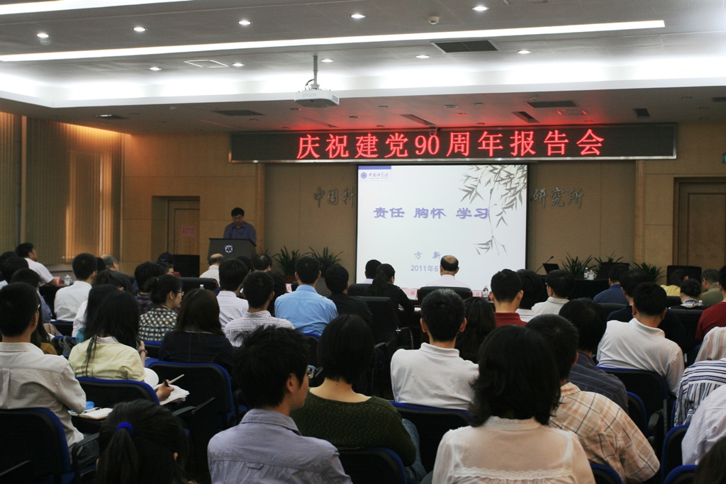6月9日,为庆祝中国共产党成立90周年,中国科学院青岛生物能源与过程研究所、中国科学院海洋研究所联合举办了“庆祝建党90周年报告会”。中国科学院党组副书记方新出席活动,并以“责任、胸怀、学习”为题做了专题报告。报告会由青岛能源所党委书记赵汐潮主持,青岛能源所、海洋所200余名骨干参加了报告会。