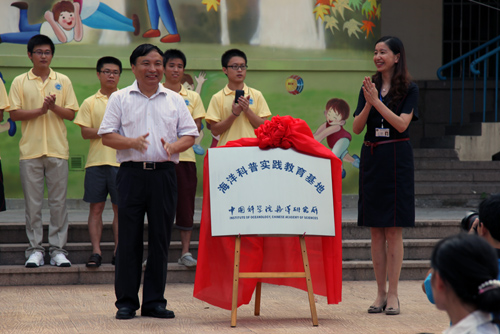 9月1日,在青岛嘉峪关小学2011—2012学年度第一学期开学典礼暨升旗仪式上,中科院海洋所——青岛市嘉峪关小学“海洋科普实践教育基地”正式揭牌。