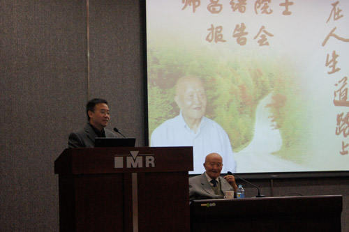 为了继承和发扬金属所老一辈科学家的优良传统和作风,学习师昌绪院士为祖国科学事业献身的精神和事迹,金属所研究生部邀请91岁高龄的师昌绪先生,于9月20日上午在金属所北区报告厅,为500余名师生作了题为“在人生的道路上”的报告。师先生从自己的人生经历、爱国情怀、科研与管理工作和人生感悟等几个方面为师生们作了精彩讲述。李依依院士,柯伟院士,党委书记、常务副所长成会明研究员,副所长杨锐研究员、谭若兵研究员等出席了报告会,报告会由杨锐副所长主持。