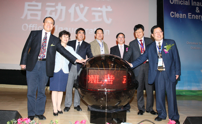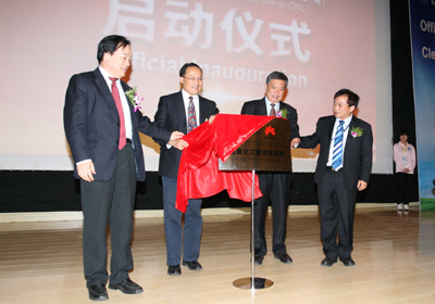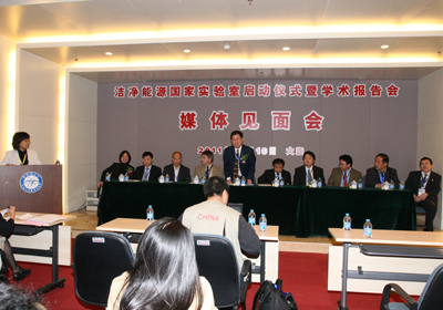 十四时四十分许,程津培院士、李静海副院长、谢克昌副院长、吴登昌副省长、朱程清副市长、李灿院士和张涛所长共同按动启动球,宣布洁净能源国家实验室(筹)正式启动。