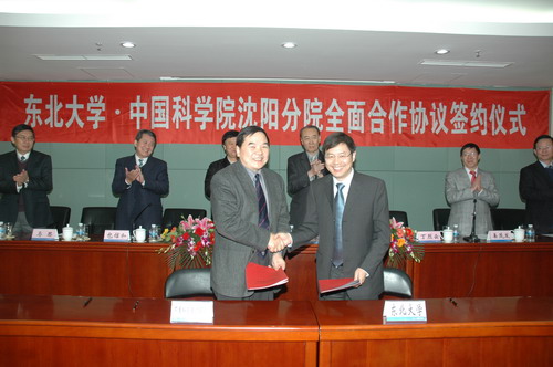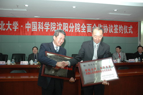 2011年12月20日,在东北大学汉卿会堂中国科学院沈阳分院与东北大学举行了全面合作签字仪式,东北大学与中科院沈阳分院系统金属研究所、沈阳自动化研究所、海洋研究所和沈阳计算技术研究所公司分别签署了人才培养及科学研究合作协议,向首批东北大学聘请的研究所兼职教授(兼职博士生导师)颁发了聘书。沈阳分院院长包信和院士、党组书记马思,东北大学党委书记孙家学、校长丁烈云、副校长姜茂发、左良,沈阳分院系统金属所所长卢柯院士、沈阳自动化所副所长桑子刚、沈阳计算所公司董事长林浒、海洋所等院校领导出席了签字仪式,受辽宁省副省长陈超英委托辽宁省科技厅副厅长唐国华出席签字仪式并讲话,签字仪式由东北大学副校长姜茂发主持。