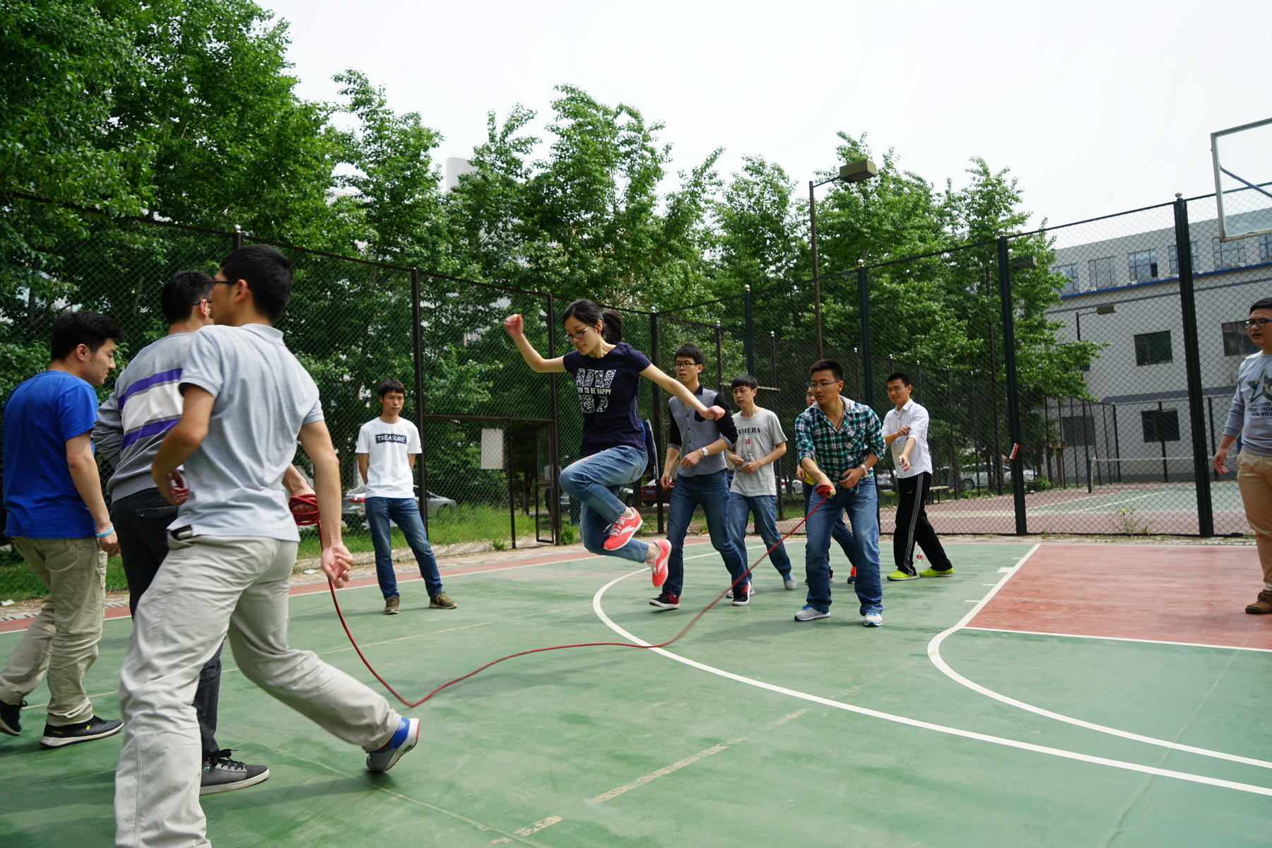 这次趣味运动会得到了各个研究室的大力支持和研究生的广泛参与,共有八支代表队、近百人参加比赛。运动会设有“仙人指路”、“集体跳大绳”、“摸石过河”、“女王保卫战”、“十人十一足”等五个项目。在新颖有趣的比赛中,队员们热情高涨,观众欢呼声此起彼伏?!凹逄笊毕钅?,十名参赛队员摇绳有序,犹如飞龙;“仙人指路”项目双人配合默契,妙趣横生;“摸石头过河”项目四人接力,紧张有序;“十人十一足”项目队员团结向前,彰显齐心协力。