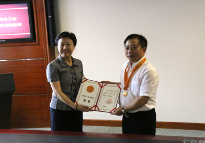 6月23日,大连市总工会副主席于淑君一行4人专程来到中国科学院大连化学物理研究所调研考察,并为该所副所长刘中民颁发全国五一劳动奖章。