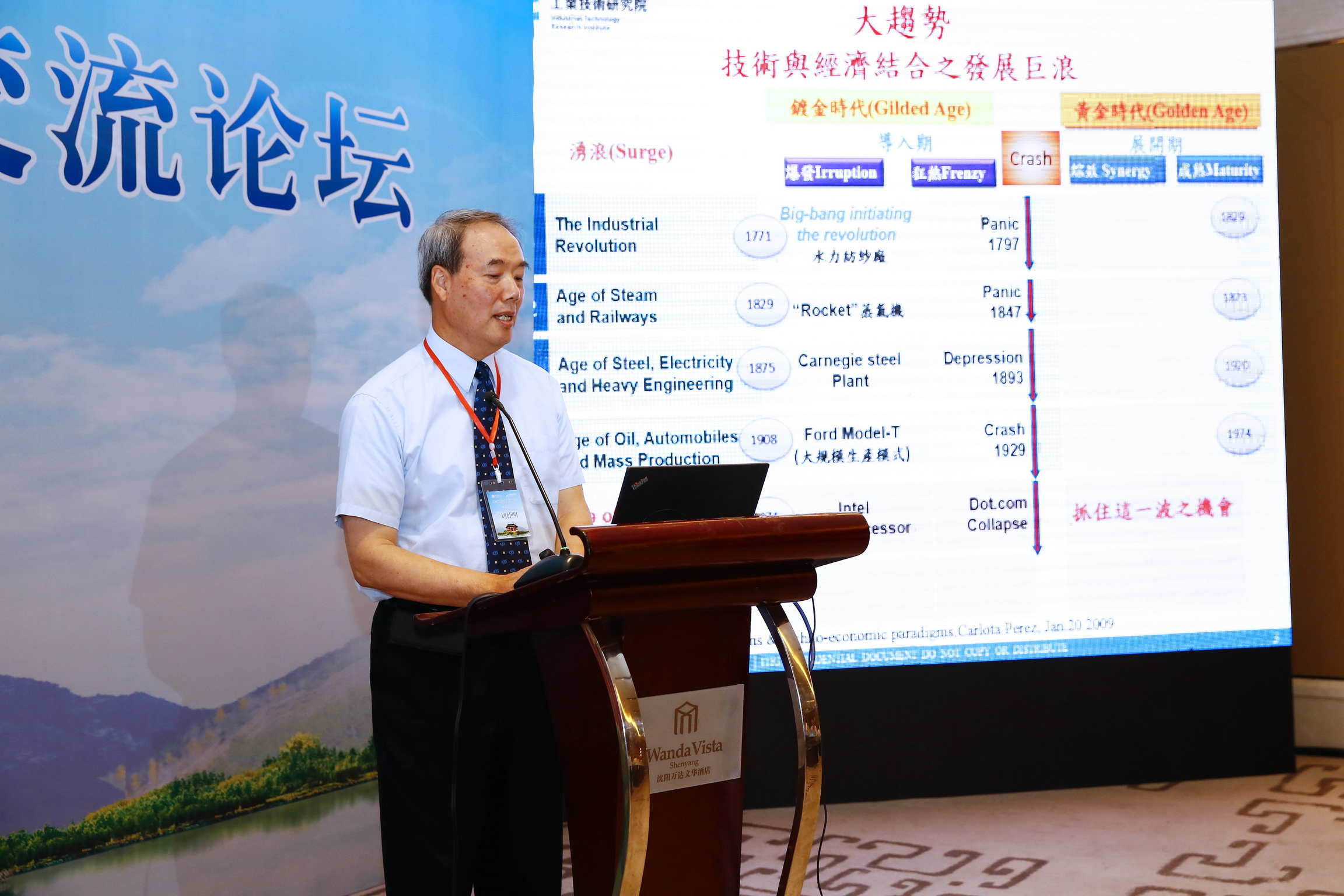 段家瑞代表工研院致辞。他说,中科院与工研院在基础研究和成果转化方面各自具有优势。本届论坛的主题 “智慧制造”和“绿能环?!倍际侨蚰壳爸厥拥囊樘猓M璐嘶岽俳献?、创造双赢,未来的合作更加深入。