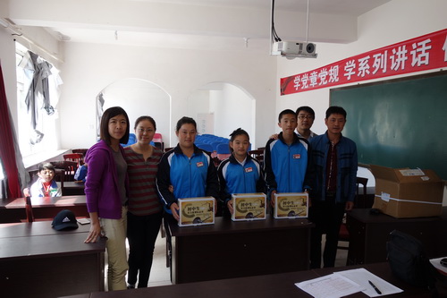 金昌杰一行首先到“教育扶贫”对口试点单位——朝阳镇九年一贯制学校进行调研,在朝阳镇委书记李峰同志的陪同下,实地了解了学校的总体建设情况,以及由分院系统扶贫基金资助的学校基础设施的改造完善情况。工作小组中的三名“兼职辅导员”还与对口联系和帮扶的学生进行了面对面的交流,并向学生赠送名著等课外读物,鼓励学生好好学习,健康成长。