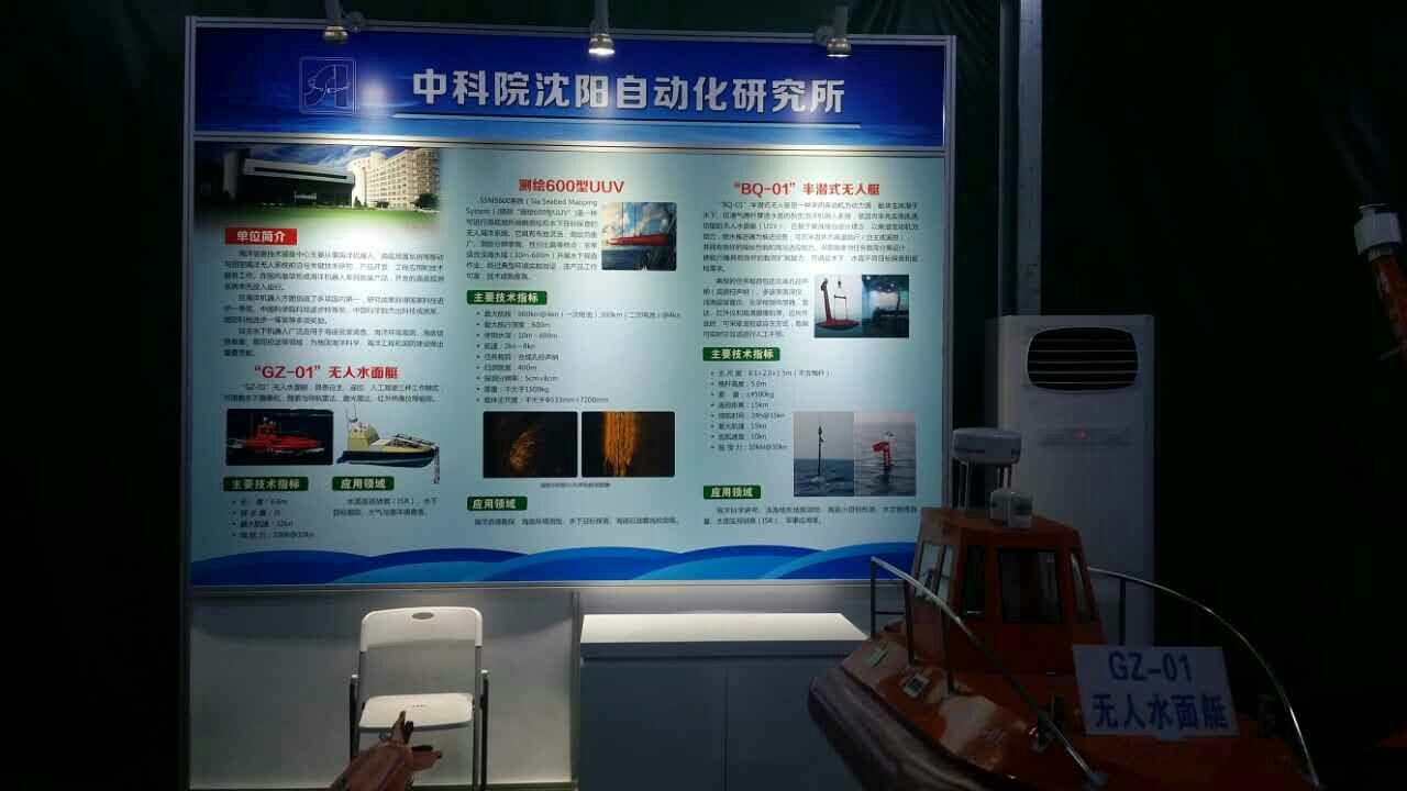 在本次展览中,沈阳自动化所展出了自主研发的多项技术和成果,包括:无人直升机及自主控制技术、“潜龙一号”6000米自主水下机器人、“海翼号”水下滑翔机、“海斗”号全海深自主??厮禄魅?、通用组部件及模块、海底观测网、测绘600型UUV、半潜式无人艇和无人水面艇,分别以展板、实物或模型的形式展出。(工程项目处 机器人学研究室 水下机器人研究室 海洋装备技术装备中心 综合办公室)