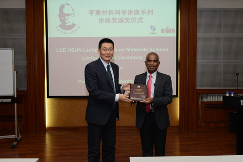 张健副所长为Arumugam Manthiram教授颁发李薰讲座奖奖牌
