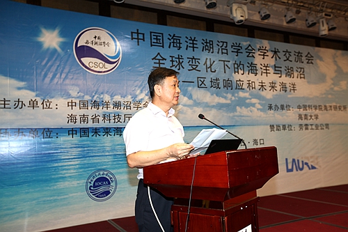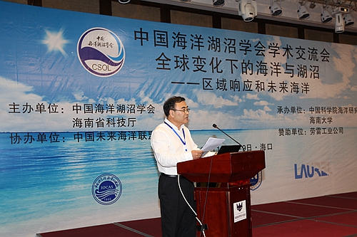 中国海洋湖沼学会理事长、中国科学院海洋研究所所长孙松研究员,中国科学院海洋研究所党委书记、副所长王凡研究员,中国海洋湖沼学会副理事长、华东师范大学丁平兴教授,国家海洋局第一海洋研究所马德毅研究员、中国科学院南京地理与湖泊研究所所长沈吉研究员、中国海洋大学吴德星教授、国家海洋局第二海洋研究所张海生研究员,海南大学副校长胡新文教授,以及国内外海洋湖泊领域的专家、学者参加会议。大会开幕式由中国海洋湖沼学会副理事长兼秘书长、中科院海洋所副所长杨红生研究员主持。