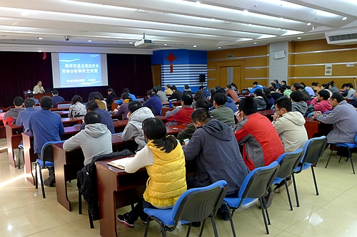 11月4日,2016年度管理干部培训月暨汇泉讲堂首次活动顺利举行?;疃肓饲嗟菏形餐懦稍?、海军航空工程学院社会科学部主任李福坤教授作题为“我国国防安全形势和国防外交对策”的专题讲座,海洋所各党支部书记、支部委员,管理支撑部门工作人员,研究室(中心)管理人员等100余人参加活动。