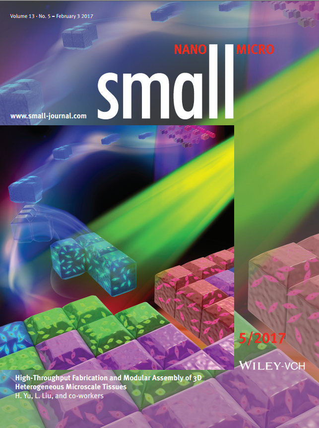 近日,国际著名学术期刊Small(中科院一区TOP类期刊,影响因子8.315)以封面论文形式刊载了中国科学院沈阳自动化研究所微纳米课题组在微纳机器人与生物医学交叉领域的最新成果High-Throughput Fabrication and Modular Assembly of 3D Heterogeneous Microscale Tissues,该研究同时被ADVANCED SCIENCE NEWS(Wiley学术出版集团的咨询网站,主要报道近期在其旗舰刊物上发表的重要研究成果)以“微组织3D生物制造的新方法”为题进行了专题报道,并连续多天位于新闻阅读量排行之首。