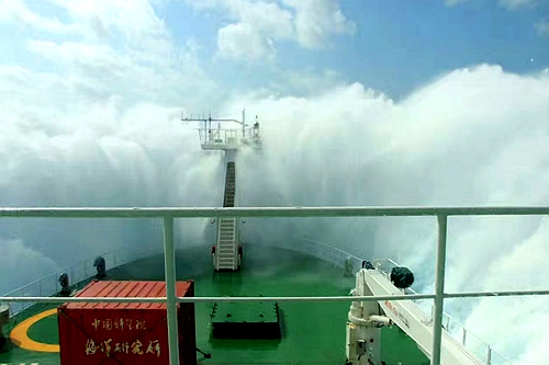 “科学”号顶着风浪前行