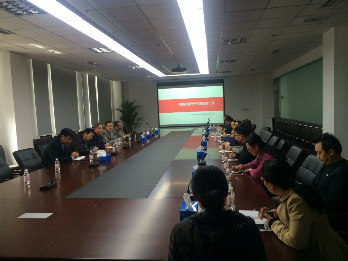 4月11日,园区办公室在能源楼111会议室召开了研究所食堂合同年度工作考核会议,研究所伙食委成员、各管理部门代表、各二级所代表、学生代表及北京科住物业餐饮部等相关人员参加了本次会议。