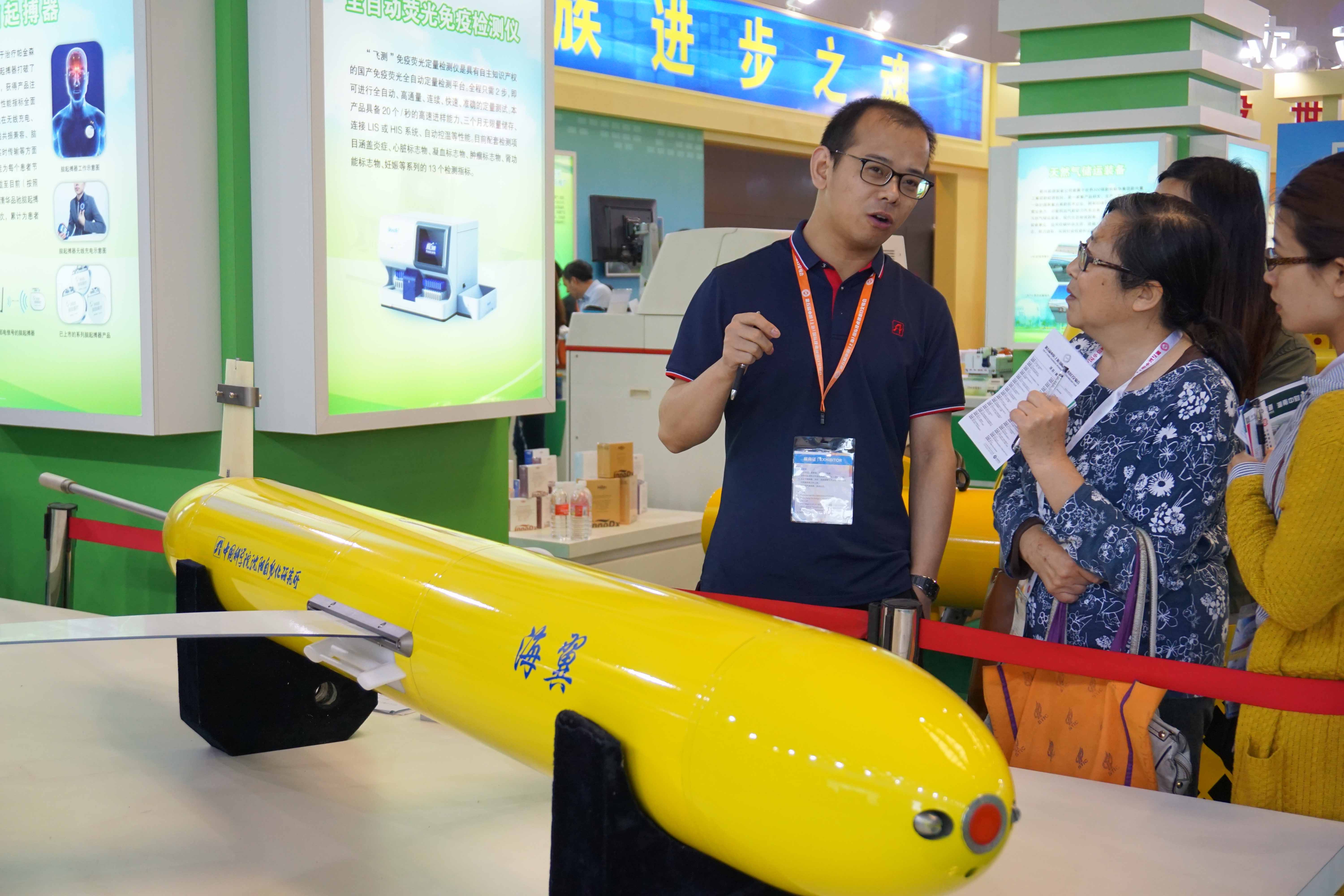 以“创新驱动发展、?;ぶ恫?、促进技术贸易”为主题的第五届中国(上海)国际技术进出口交易会(以下简称“上交会”)于4月20日至22日,在上海世博展览馆举行。中国科学院沈阳自动化研究所研制的“海翼”7000米级水下滑翔机和1000米级水下滑翔机应邀参加了科技部组织的“国家重大科技成就展”专场展出。