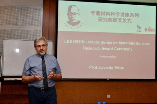 来访期间,Levente Vitos教授为金属所科研人员和研究生作了题目为“First principles modeling of high-technology alloys”的李薰奖报告,介绍了复杂成分合金的第一原理研究方法及其在不锈钢及高熵合金的塑性变形及内禀能垒等方面应用的开拓性研究工作。报告前,杨锐所长代表金属所为Levente Vitos教授颁发了李薰研究奖奖牌。颁奖仪式和报告会由胡青苗研究员主持。报告得到了金属所科研人员和研究生的热烈欢迎。