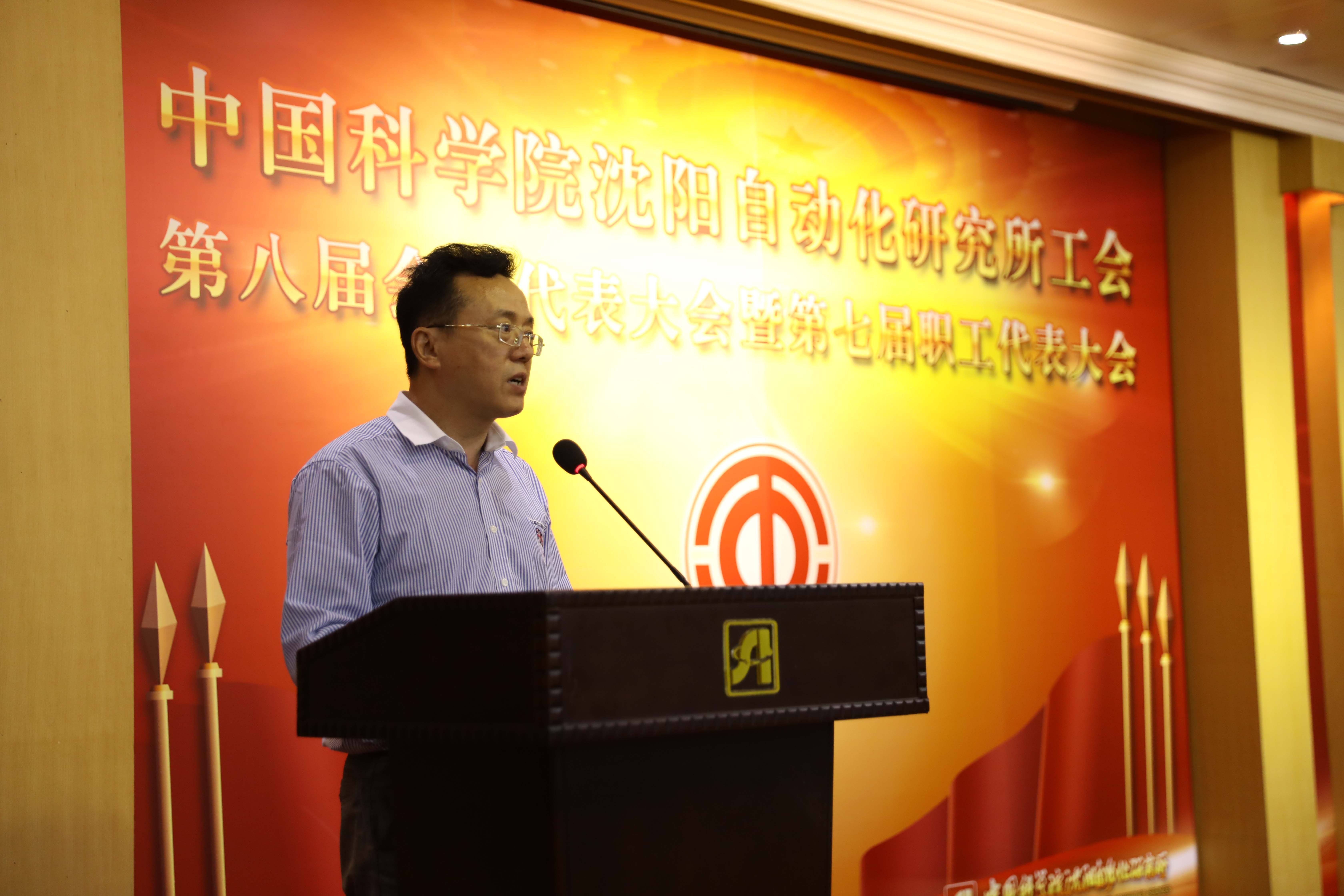 6月29日下午,中国科学院沈阳自动化研究所工会第八届会员代表大会暨第七届职工代表大会在学术报告厅隆重举行。来自研究所工会各分会的83名代表参加了会议。研究所党委书记兼副所长桑子刚,纪委书记梁波,党委副书记兼副所长、工会主席孙雷出席会议?;嵋橛勺酆习熘魅瓮趺骰灾鞒?。