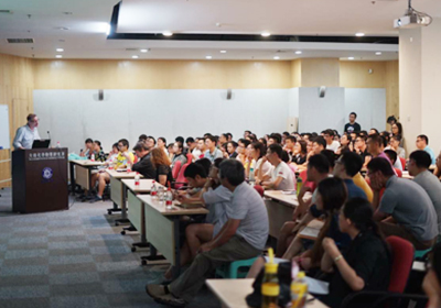 首先,Raymond以“Opening”“Challenge”“Action”“Resolution”,即OCAR四大科技论文前言写作逻辑方式,为同学们讲解了科学论文写作技巧;随后,Annmarie以诙谐幽默的语言为同学们讲授了垃圾科技论文存在的原因以及如何辨别垃圾科技论文等;最后,Philip为同学们详细介绍了雅思听、说、读、写的技巧,并强调英语口语的三大注意点:简单介绍,长对话,自由对话。他告诉同学们英语口语应自信的去表达出去,以及“But don’t pretend to be smart”。