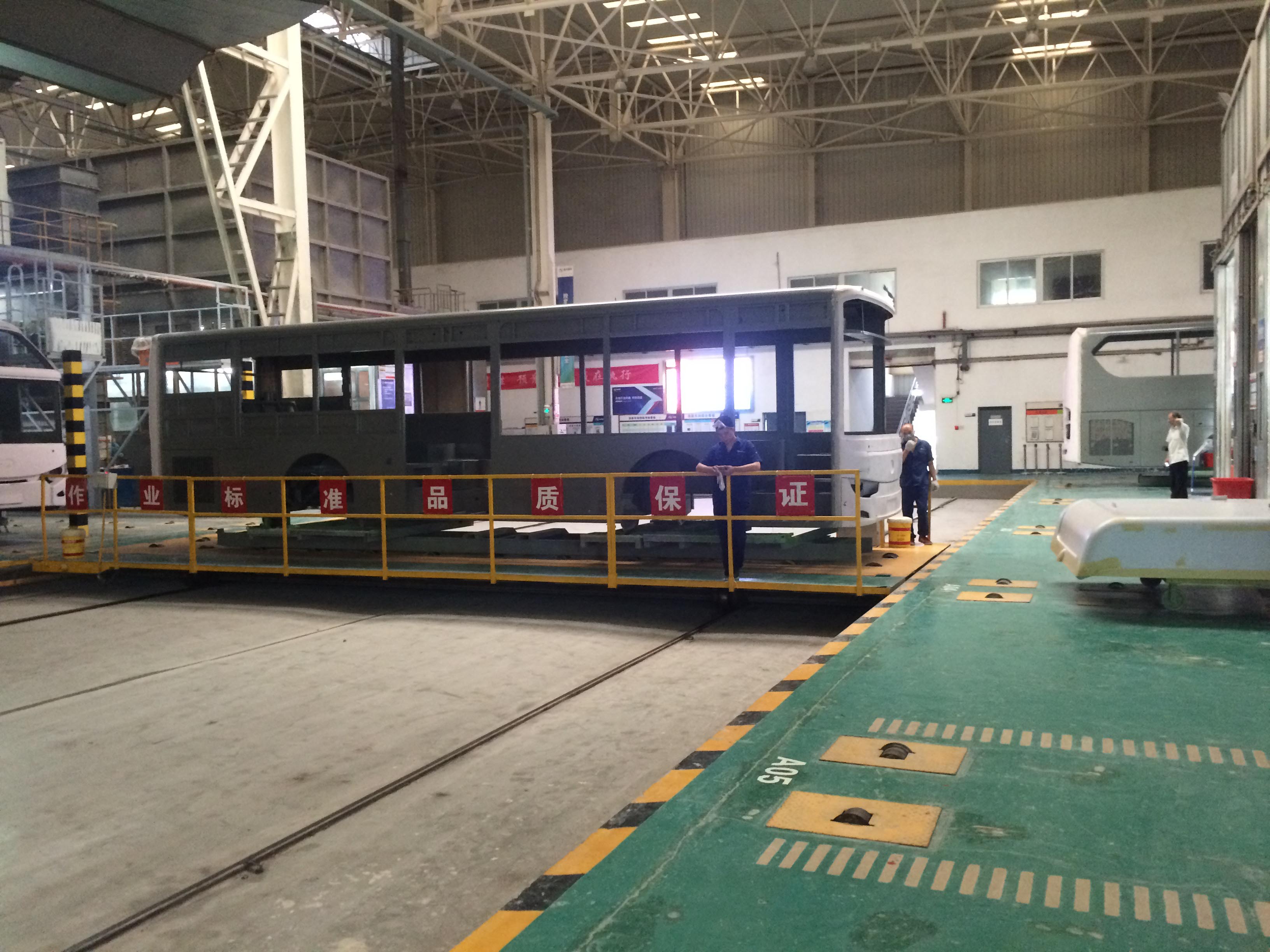 该项目采用双轨道机器人布置方式,可实现总长达14米的大客车车体中涂漆、腻子的高效机器人打磨。为适应大客车多品种、小批量的技术特点,车体制造误差大、生产节拍要求较快等技术难题,该项目综合开发了客车车体打磨机器人离线编程软件系统、基于恒力执行器的机器人柔性控制、高精度车体快速定位技术以及基于线结构光和力传感的避障物检测及避障处理等技术。该项目开发的机器人智能打磨系统可以适应车身表面最大8cm的制造误差,并实现打磨过程打磨头的自动姿态调整。该项目研发的离线编程系统可以实现大客车机器人专用打磨轨迹的快速生成,并满足每台车15分钟左右的生产节拍。