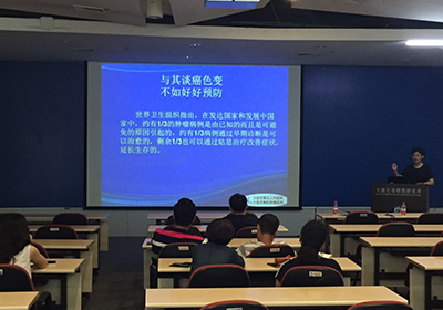 讲座中,王玫玫首先通过数据分析了我国城市居民各类疾病的危害,并结合几个实际案例,指出了我国肿瘤的发病呈现出“年轻化”态势。接着,王玫玫重点阐述了吸烟、饮食不健康、不注重体检等因素导致的各类肿瘤疾病发生的情况,并建议大家尽量戒除不良生活习惯,对各类潜在症状保持高度关注,必要时及时到医疗机构进行筛查。最后,王玫玫祝愿大家保持良好的体魄,健康快乐的生活。