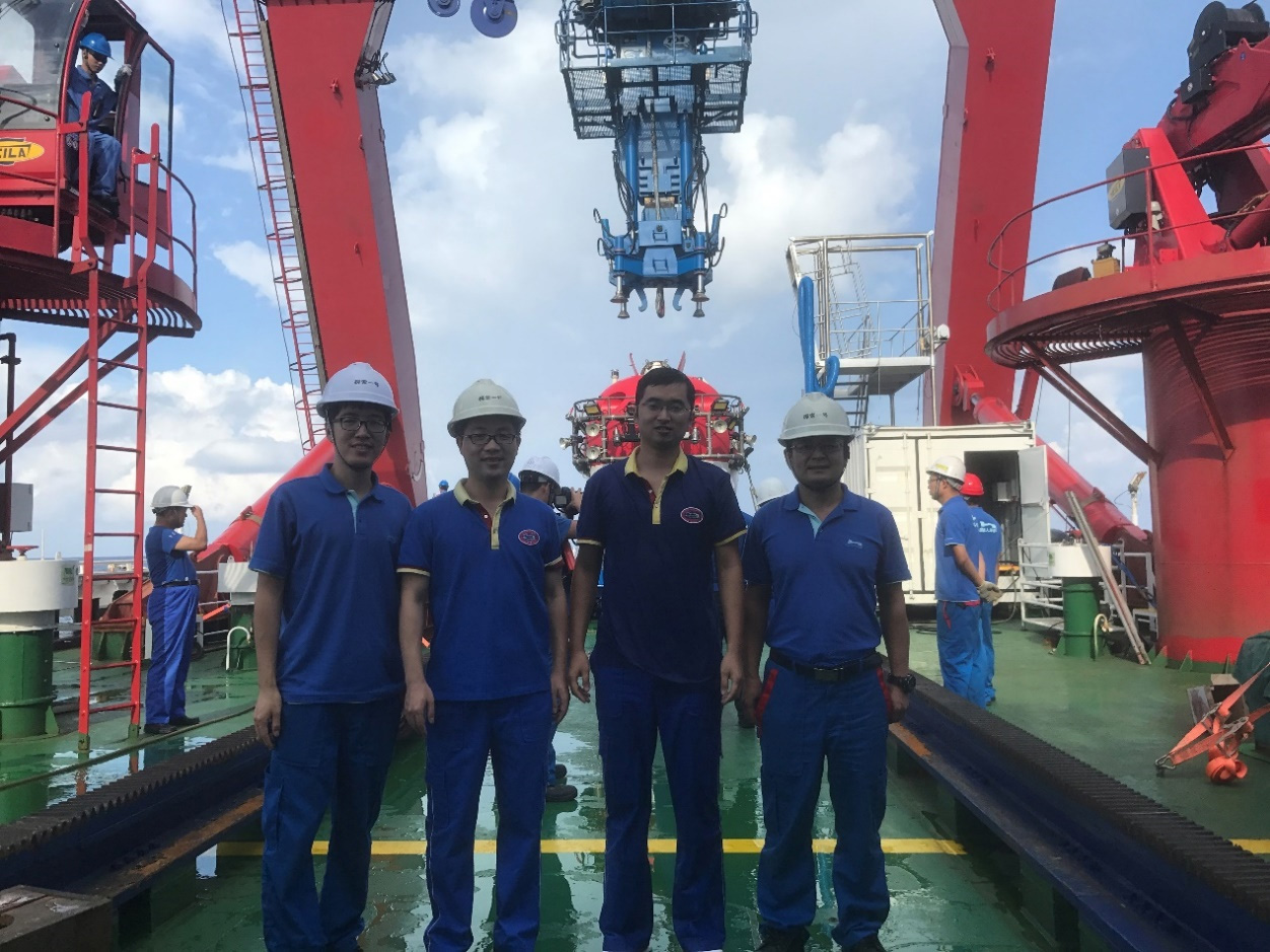 作为主要参研单位,创新研究院共计五名队员参与海试工作,在出色完成了海试保障任务的同时,派遣科研人员参与下潜,执行水下试验任务。潜水器副总设计师、控制系统负责人祝普强带队全程参加此次海试任务,并参与了海试下潜任务;赵兵作为主驾驶员,参与了包括4500米级首次下潜和最大深度潜次下潜在内的12次下潜,为潜水器高密度连续下潜做出了重要贡献;赵洋、卢广宇作为控制系统研制人员,保障了潜水器的正常运行,并协助其它单位排除故障,体现了海试中“有岗位无单位”精神,获得一致好评。