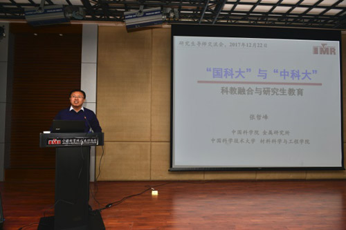 会上,张哲峰副所长作了题为“ ‘国科大’与‘中科大’科教融合与研究生教育”的报告。他回顾了我所研究生教育发展历程,并就未来发展向各位导师提出了问题:如何实现与中科大的深度融合?如何加强与中科大的科研合作?以及如何克服研究生教育未来发展的瓶颈问题。最后他希望大家共同努力,进一步提高对研究生教育工作的认识,推动金属所研究生教育向着更高层次迈进。