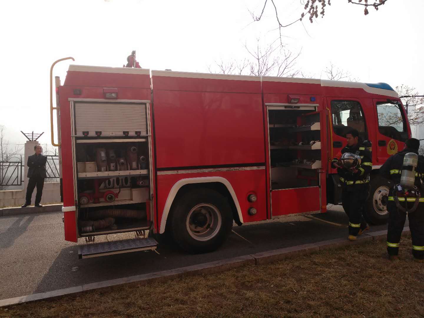 元旦前,青岛市崂山区消防大队到研究所检查指导消防工作。消防官兵实地检查了消防水泵、高位水箱、消防中控系统、灭火器、消火栓等消防设备设施,查看了消防值班记录、消防维保记录、消防登记备案等资料,同时对研究所义务消防队进行了现场指导,开展了消防灭火演练。检查人员对研究所的消防工作给予了高度肯定。