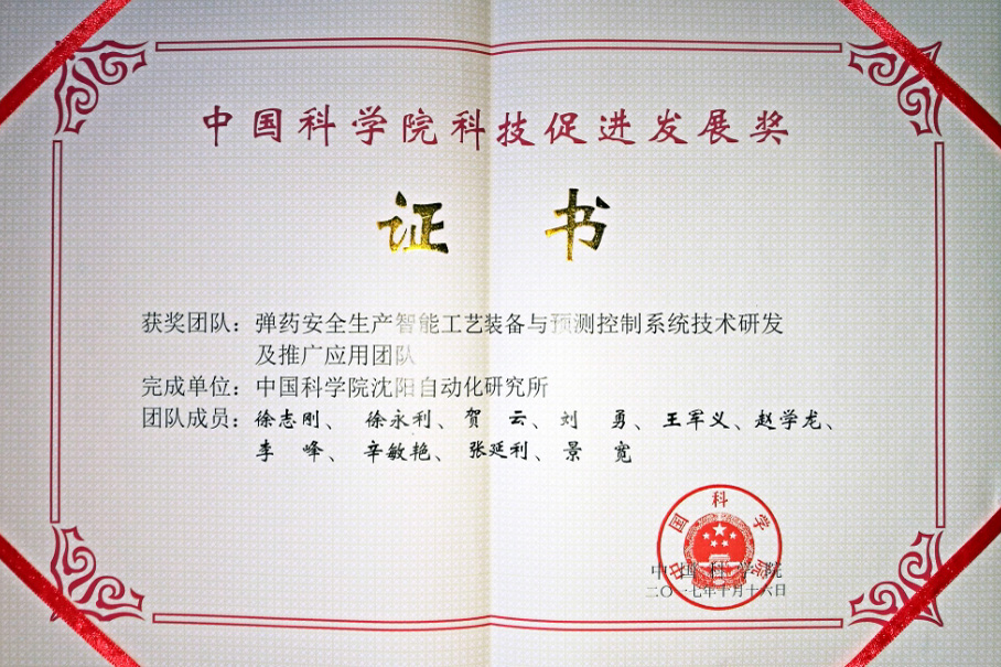 中国科学院科技促进发展奖于2014年设立,授予为推动科学技术研究面向国家地方需求、经济社会发展,鼓励在服务国民经济、社会发展、社会公益等科技创新活动中做出重要贡献的团队。每年奖励总数不超过10 个,2017年全院共有7个团队获此殊荣。(科技处、装备制造技术研究室)