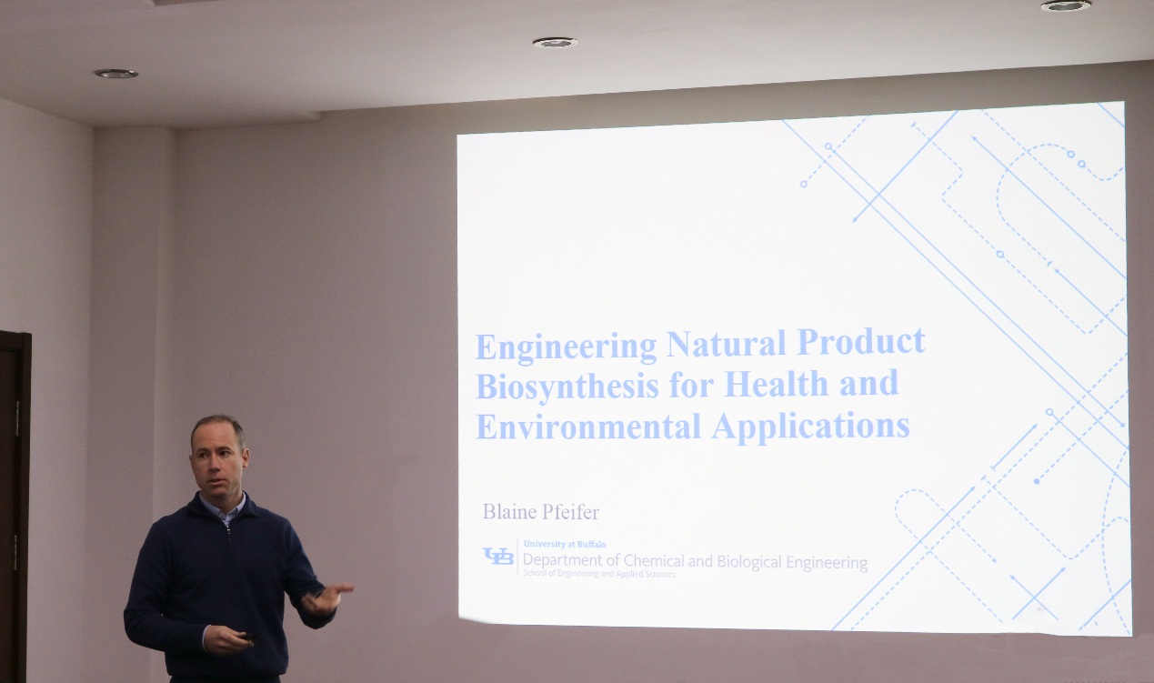 1月24日,纽约州立大学布法罗分校Blaine Pfeifer教授受邀参加青岛能源所主办的合成生物学系列学术讲座。Blaine Pfeifer任纽约州立大学布法罗分校化学与生物工程学院教授,研究方向主要为异源天然产物生物合成以及疫苗研制等,在生物合成及合成生物学领域的研究具有很深的造诣。