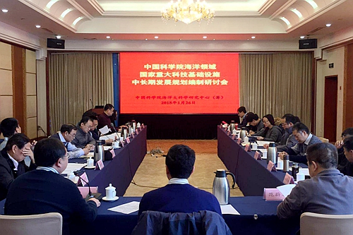 1月26日,中国科学院海洋领域重大基础设施中长期发展规划研讨会在青岛召开。院发展规划局、海洋领域专题研究组、国家重大科技基础设施专题研究组、特邀相关单位、海洋大科学研究中心等专家和代表共35人参加了会议?;嵋橛珊Q蟠罂蒲а芯恐行闹魅?、海洋所/烟台海岸带所所长王凡研究员主持。