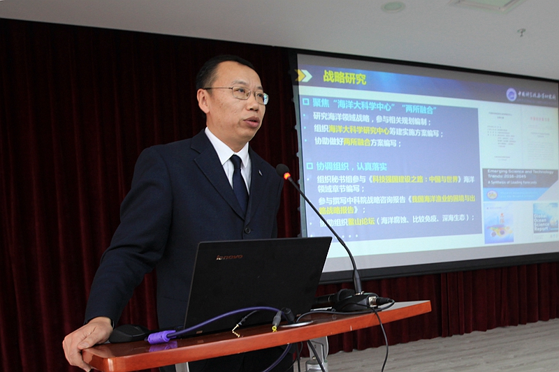 王凡所长指出,2017年是海洋所深化改革、创新发展的关键之年。一年来,研究所深入学习贯彻落实党的十九大精神和习近平新时代中国特色社会主义思想,顺利完成党政领导班子换届,全面贯彻落实院党组关于海洋所、烟台海岸带所融合发展的重大决策部署,扎实推进中科院“率先行动”计划,中国科学院海洋大科学研究中心正式获批筹建,各项工作成效显著,研究所迎来了改革创新发展的新时代,展现了良好的发展势头。