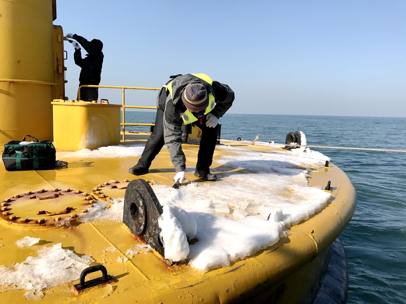 黄海站2米浮标除冰维护