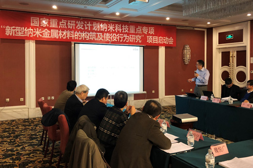 项目负责人卢柯院士及各课题负责人汇报了项目及课题的研究目标、主要研究内容、课题设置和研究方案、考核指标和年度计划、组织管理、预期成果等内容,与会专家对项目内容和目标提出了指导性建议。专家充分肯定了项目的价值和意义,指出本项目采用全链条、一体化设计,目标清晰、人员结构合理、任务分工明确、协调和管理机制完善。通过梯度纳米结构、层片纳米结构、复相纳米结构、极小尺寸纳米结构等四类典型纳米结构的构筑,探索传统结构材料纳米化的有效途径,并向特定工程构件的实用合金材料延伸,探索和推动新型纳米结构金属材料的工业应用。本项目还瞄准纳米金属材料的前沿未知领域,通过结构控制、制备技术、变形机制、使役行为等关键科学问题的系统研究,力争率先实现小于10nm的极小特征尺寸纳米金属材料的构筑,探索可能的新发现、新原理和新方法。卢柯院士表示将切实履行责任、加强沟通、细化目标,争取做出更多、更大的原创性成果。