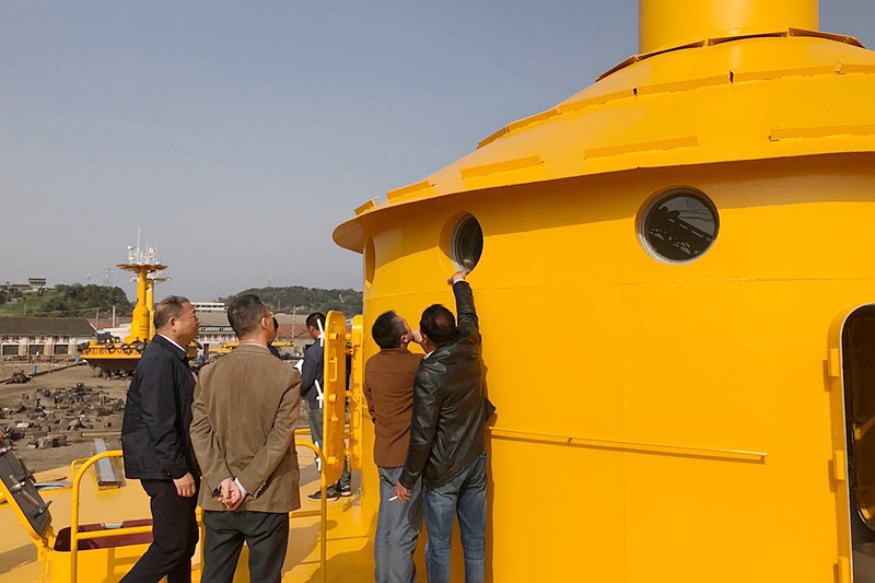 在平台建造现场,技术人员对三锚式浮标综合观测平台的标体建造整体情况进行了详细质询了解,通过长期驻厂的质量监督人员了解了标体建造过程中各个环节质量把关情况,对各部分的功能和技术指标进行了仔细检查,并与浮标制造厂商相关人员针对进度问题进行了详细探讨,督促按照时间节点尽快完成包括智能绞车在内的整套系统集成、联调和下水海试等相关工作。