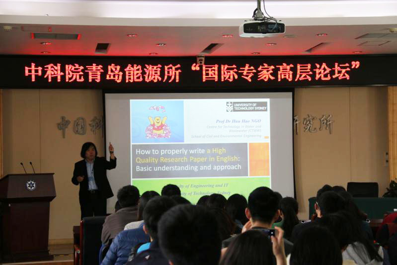 4月20日下午,生物能源领域国际知名SCI期刊Bioresource Technology执行主编Huu Hao Ngo教授做客我所国际专家高层论坛,为研究所科研人员和学生做了题为“How to properly write a high quality research paper in English”的学术讲座??萍即Ω贝Τだ罹粗鞒致厶常⑽?span lang="EN-US" style="font-size: 12pt; line-height: 175%">Ngo教授颁发了“国际专家高层论坛”荣誉奖牌。 Ngo教授首先介绍了其所在的悉尼科技大学的情况,并介绍了Bioresourse Technology期刊近年的发展。随后,着重从期刊编辑的角度对科研论文的Title、Abstract、Introduction、Materials and methods、Results and discussion、Conclusion等各部分的写作方法和注意事项进行了详细讲解,列举了若干实例和技巧,并与参会人员现场进行了答疑解惑、交流心得。本次“国际专家高层论坛”为大家提供了难得的可以与国际知名期刊主编面对面交流的机会,研究所科研人员和学生表示受益匪浅。