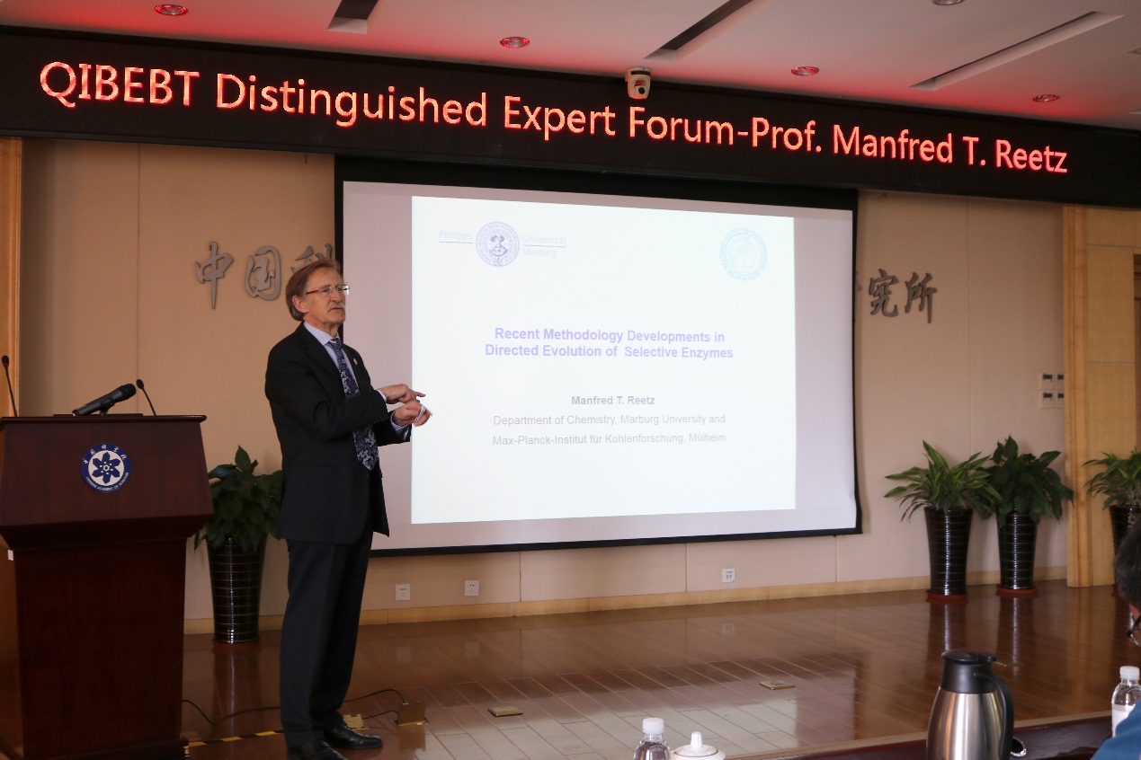 5月8日,院“国际人才计划”杰出学者Manfred T. Reetz教授出席青岛能源所主办的“国际专家高层论坛”。Reetz教授是国际著名有机化学家、生物催化领域专家、德国科学院院士以及荷兰皇家人文和科学院外籍院士。本次论坛由研究所副所长吕雪峰研究员主持,并为Reetz教授颁发了“国际专家高层论坛”荣誉奖牌。