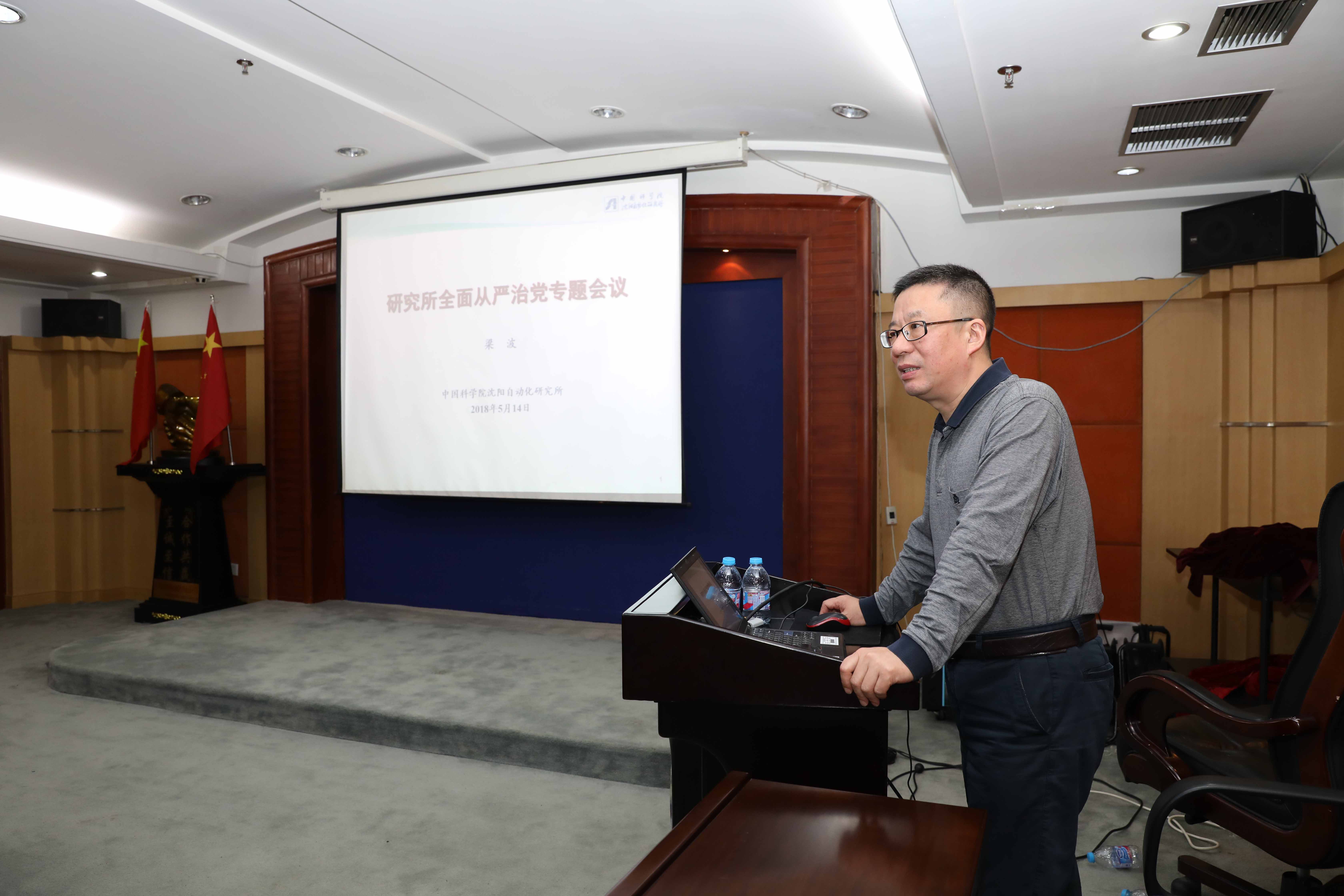 沈阳自动化所纪委书记梁波作研究所全面从严治党专题报告。他首先从十八大以来的七组数据入题向与会人员介绍了全面从严治党的“成绩单”;随后,他传达了十九届中央纪委二次全会精神和习近平总书记在会上的重要讲话,进一步强调了对纪检监察干部的要求;最后,他详细介绍了中科院推进全面从严治党工作情况,指出了落实监督执纪“四种形态”存在的问题及对策。