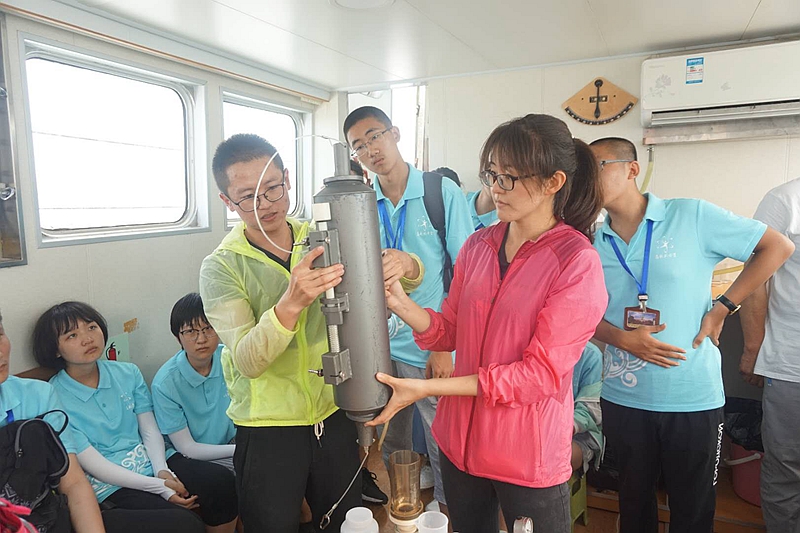 营员登上“创新”号科考船开展海洋调查