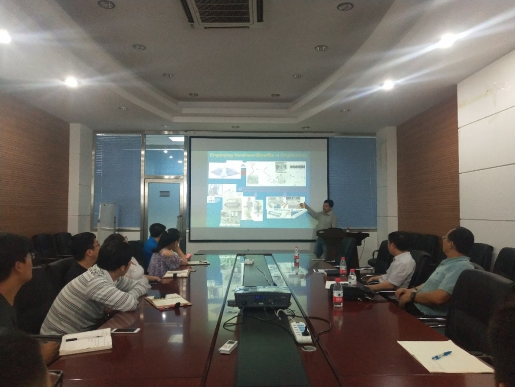 在报告中,景兴建首先详细介绍了各种非线性分析的理论方法,列举了非线性分析在故障诊断、系统辨识以及减震等方面的具体应用,包括用绝对稳定性理论进行非线性分析等。随后,景兴建介绍了他在仿生结构方面的研究成果,研制的仿骨骼结构阻尼减震系统已经进行大量的理论和实用研究,在多个方面具有应用前景。最后,景兴建就如何发表高水平论文进行了讲解,他强调理论创新和研究深度是发表论文的两大重要因素,勉励大家勤于思考,培养创新能力。他分享了自己的亲身经历,引发了与会人员的共鸣,并进行了现场交流。