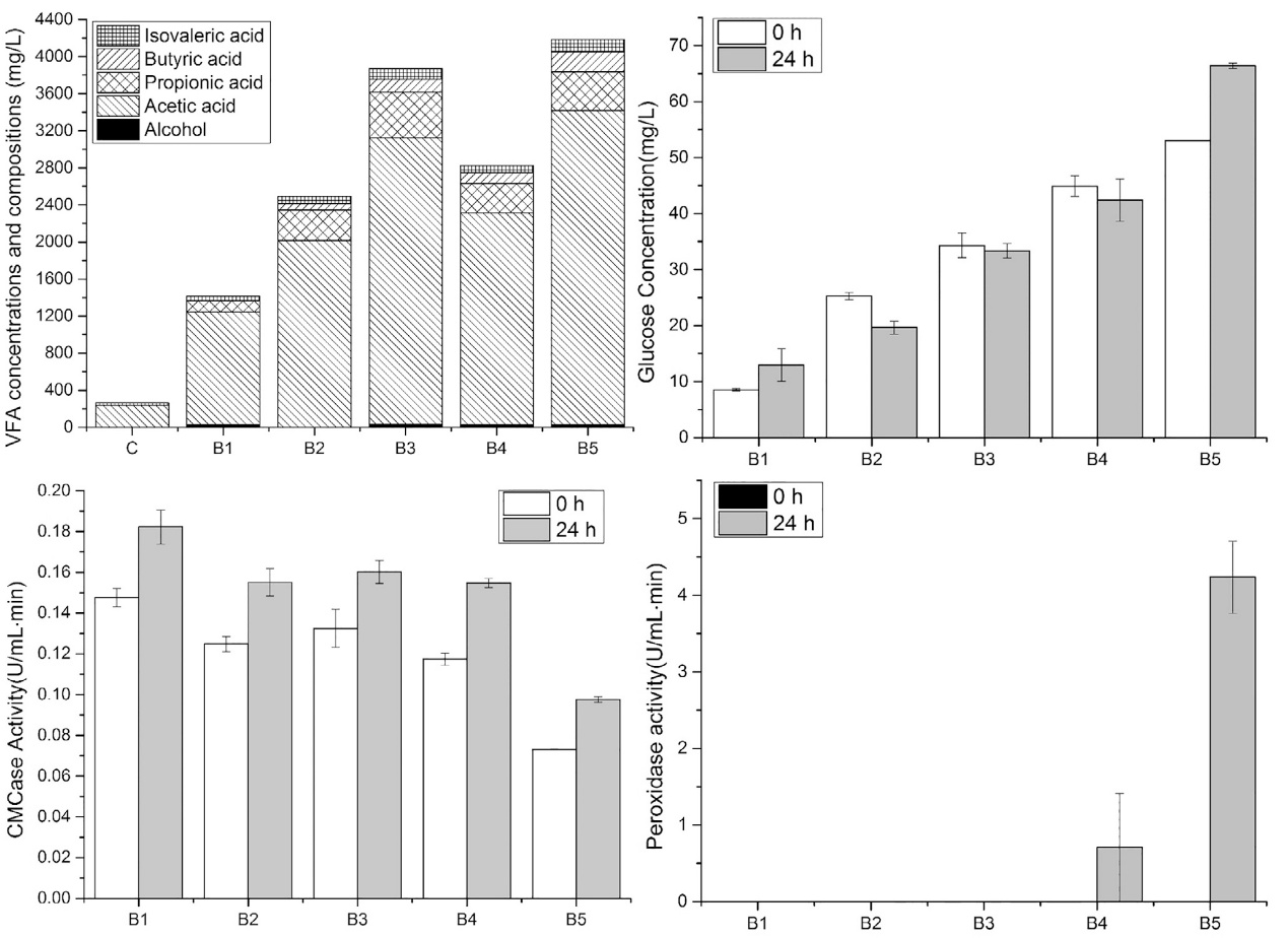 图2 微生物-微氧预处理后的酶释放及代谢产物变化