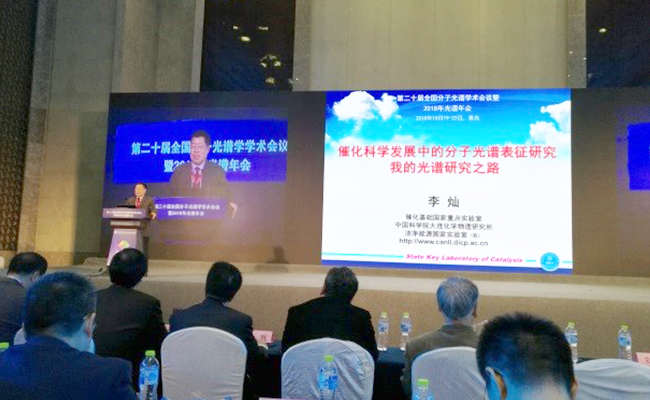 以“庆祝中国光谱40年,构建中国光谱新时代”为主题的第二十届全国分子光谱学学术会议暨2018年光谱年会于10月20日至22日在青岛召开。中国科学院大连化学物理研究所院士李灿凭借其过去近30年间在催化原位红外、紫外共振拉曼、手性拉曼光谱,以及光电催化的光电成像光谱研究方面的卓越成就,获得了中国光谱学会颁发的“中国光谱成就奖”,并受邀在开幕式上做了大会报告。