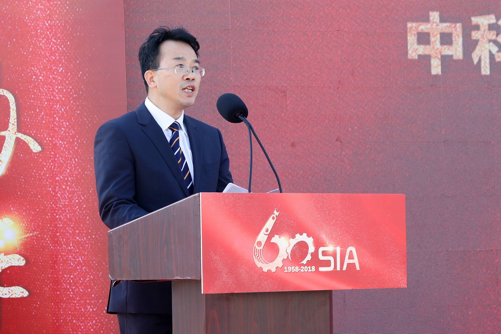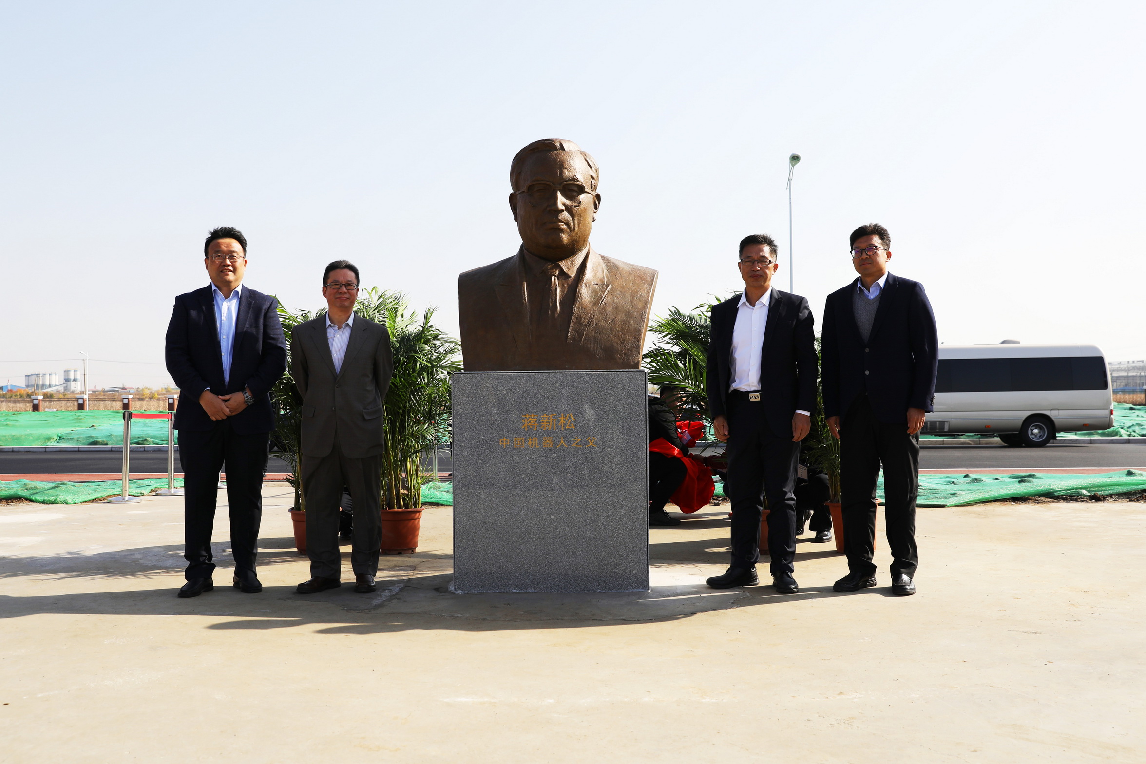 2018年恰逢中科院沈阳自动化所建所60周年,为纪念蒋新松院士,传承研究所“献身、求实、协作、创新”的创新文化精神,在创新研究院新园区敬立了蒋新松塑像,供科技工作者瞻仰,鼓舞大家为了热爱且不懈追求的科研事业而努力奋斗。沈阳自动化所副所长史泽林主持蒋新松院士塑像揭幕仪式,与纪委书记梁波,副所长、党委副书记孙雷,副所长李硕共同为塑像揭幕。