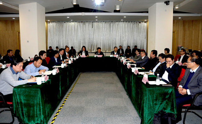 大连化物所党委书记王华首先汇报了大连化物所总体情况、科研进展、人才队伍建设、研究生工作、网信工作及发展重点,三寰集团汇报了能源学院项目设计及建设管理工作。参会人员就能源学院建设模式与方案、信息化工作、研究生招生、科教融合、研究所发展规划等工作进行了深入交流。