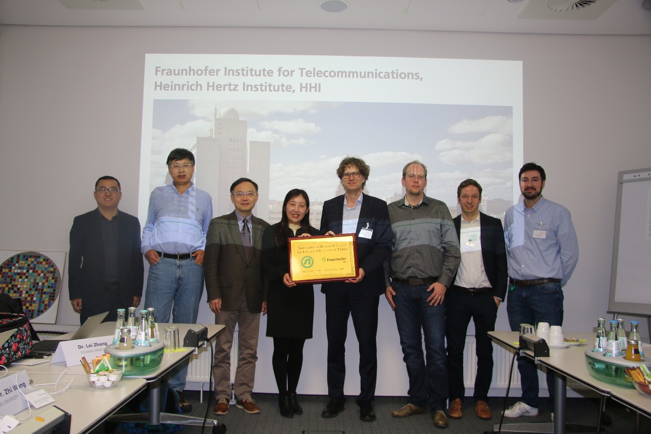 近日,由我国科技部批准成立的“工业物联网技术国际联合研究中心”(以下简称“中心”),在德国弗劳恩霍夫HHI研究所正式揭牌。中国驻德国使馆科技处第一秘书李国强,德国弗劳恩霍夫HHI研究所无线通信网络与网络部主任Slawomir Stanczak教授,中心副主任、中科院沈阳自动化研究所研究员梁炜,中心秘书、中科院沈阳自动化研究所副研究员郑萌出席了揭牌仪式。